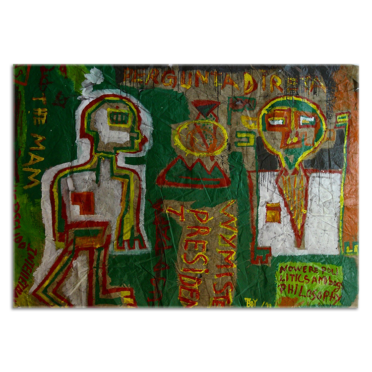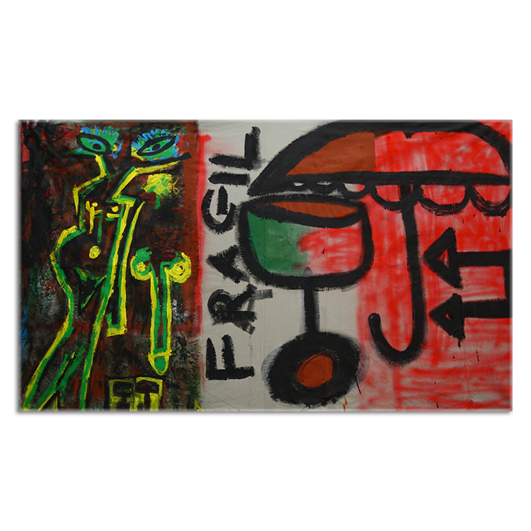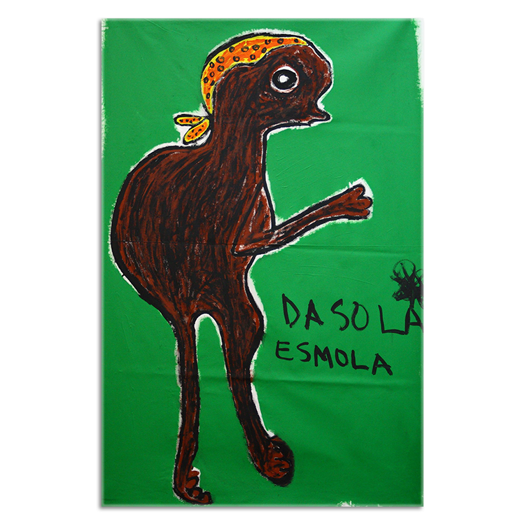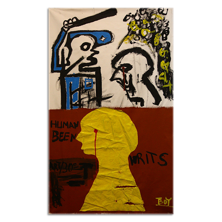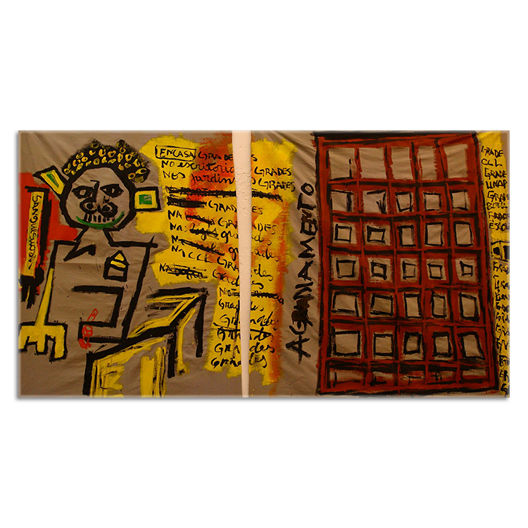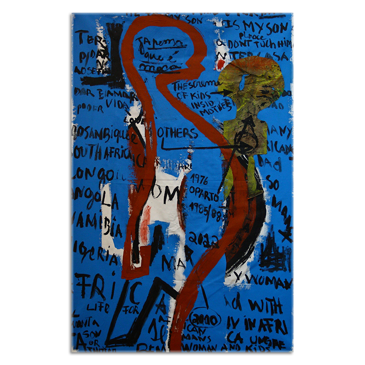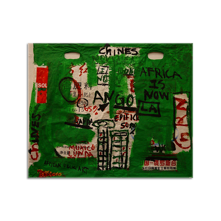 This project was born in 2010 in Luanda during a confusing time of dictatorship and oppression under the Eduardo dos Santos era. He was the dictator in power, seemingly a god venerated by all. The ruling party could commit any atrocity; nobody had a voice, and if they did, they couldn't speak. Social media in Angola at that time didn't have the reach it does today. That's why I decided to burst forth with a cry for freedom. At the time, I didn't have funds for materials, but the need to shout was so great that this wasn't an obstacle for me. I went to the old Roque Santeiro market and bought old fabrics from the used clothing section, items that come from the West for the poor in Africa. I also bought some car paints that they sold in small plastic bottles. And so I produced one of the most rebellious projects of my life, where I poured out all the pain, anger, and discontent I felt towards the MPLA system and the dictatorship of José Eduardo dos Santos.